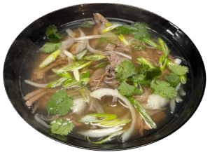 Rice noodle soup with well done beef and briskets in beef broth served with fresh basil and bean sprouts (Also served with Egg Noodle)